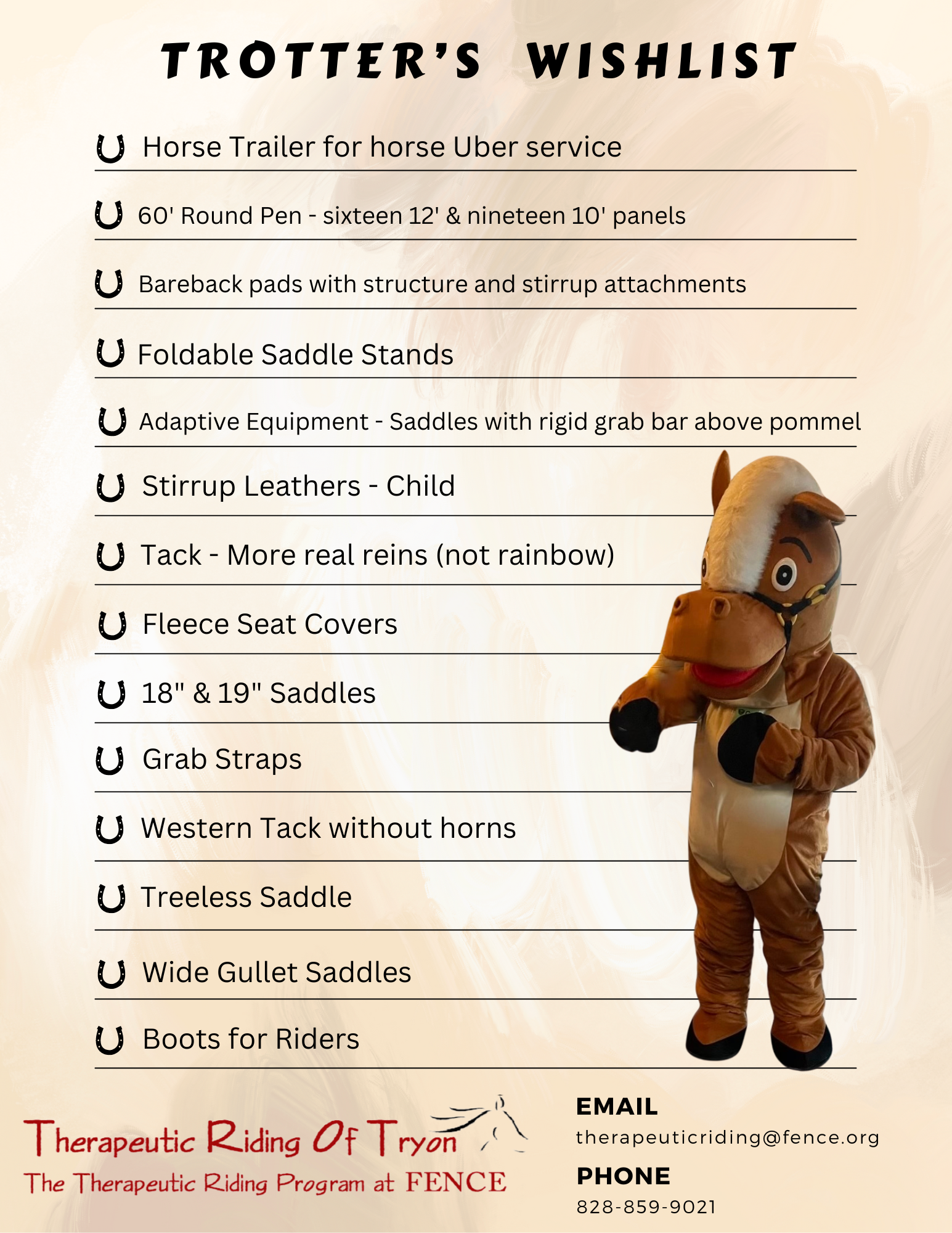 We are in need of some gently used items. If you would like to donate please give us a call!